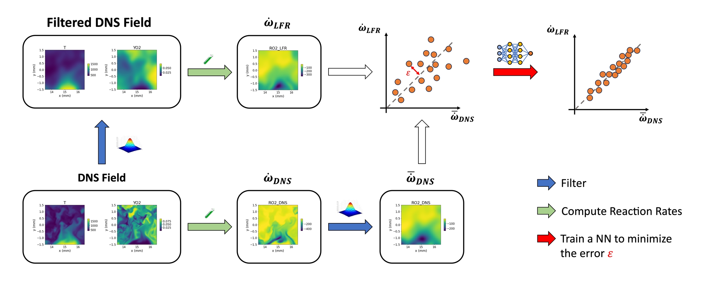 and build a data-driven closure based on Neural Networks to model the subgrid interactions between Turbulence and Chemistry.